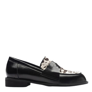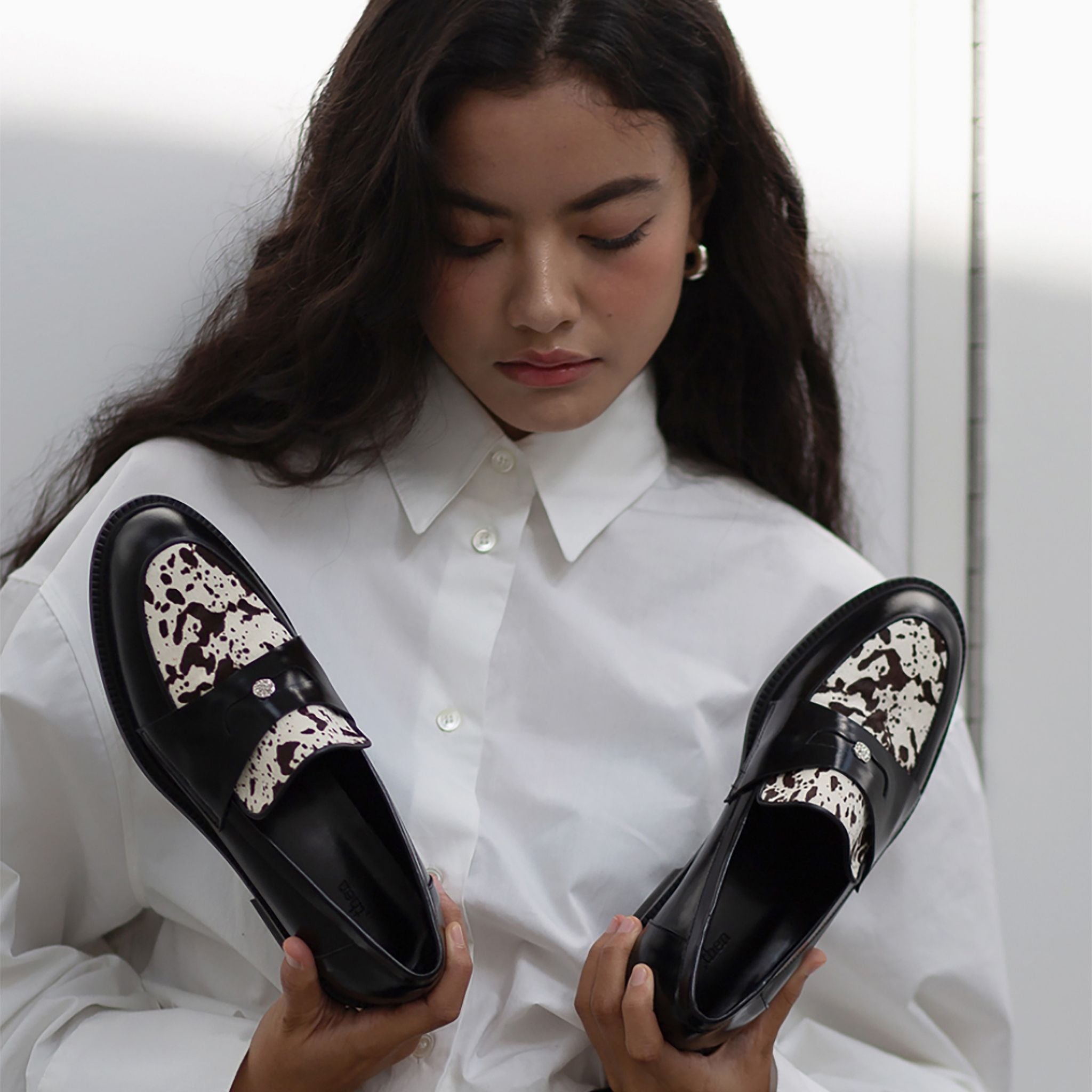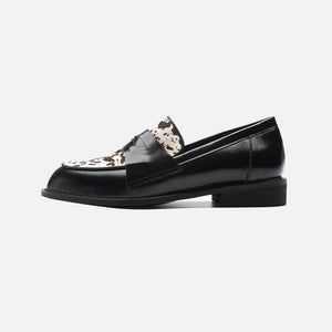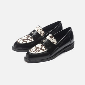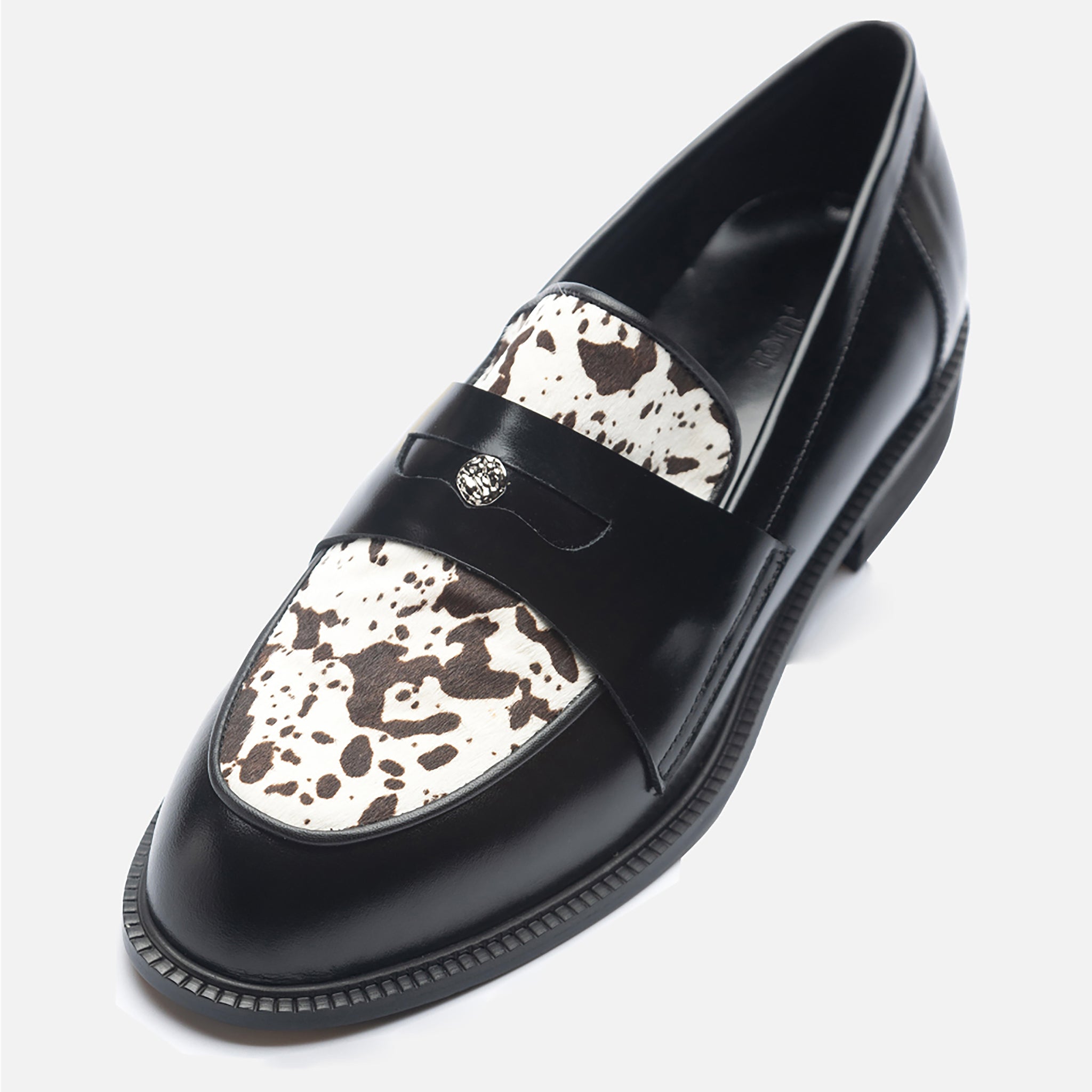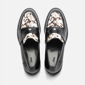 Bold yet refined, these black leather loafers by THEN reimagine a classic silhouette with avant-garde contrast. Handmade in Korea in a limited studio run, they feature a sleek penny strap and a striking cowhide-print vamp that elevates the minimalist form. The clean lines and tactile detail offer year-round versatility - style with tailored trousers for polish or denim and oversized outerwear for off-duty edge. A quiet-luxury staple for the modern wardrobe.
