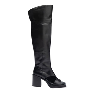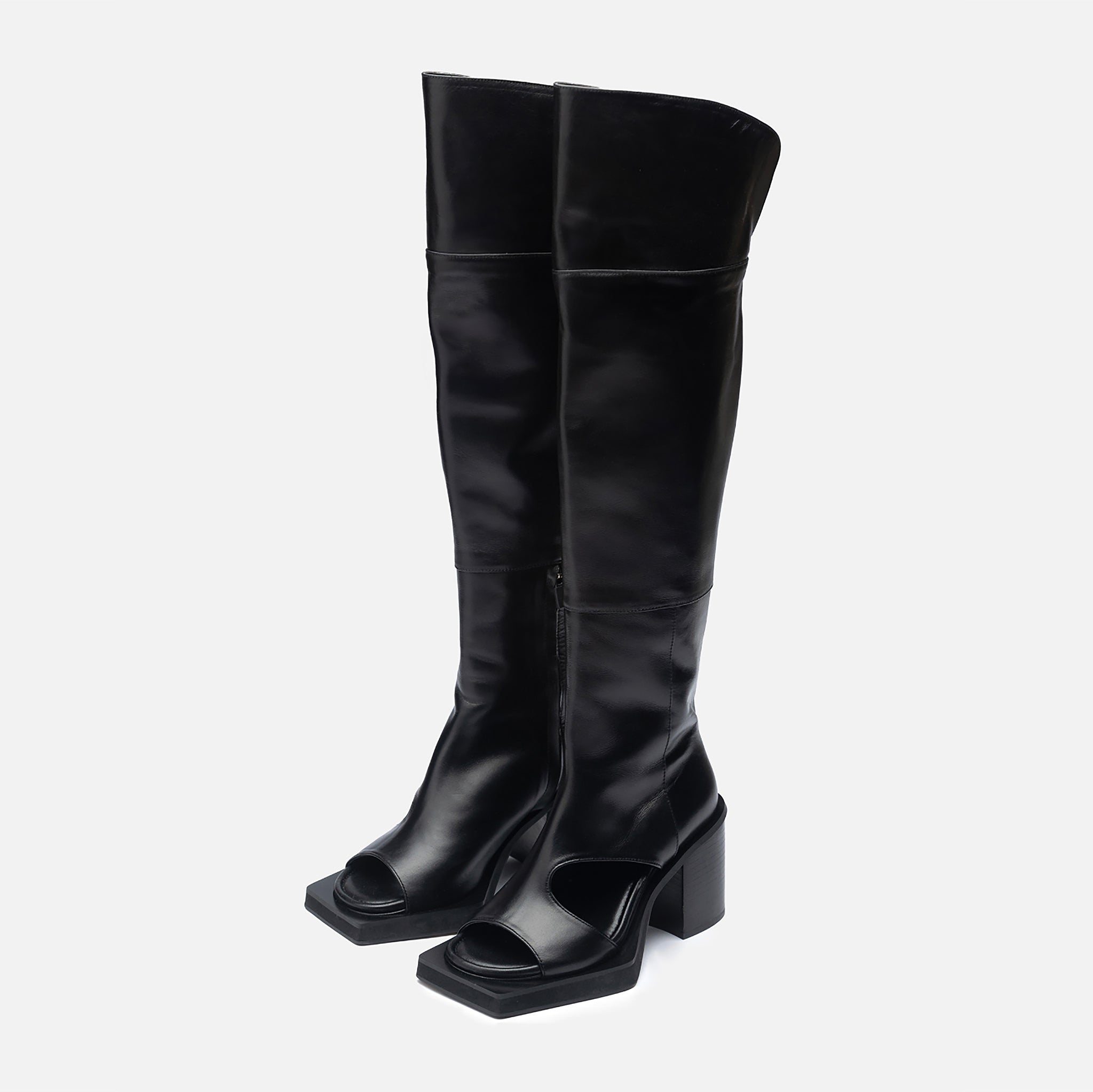 THEN - Black Open-Toe Knee-High Leather Boots | DOORS NYC