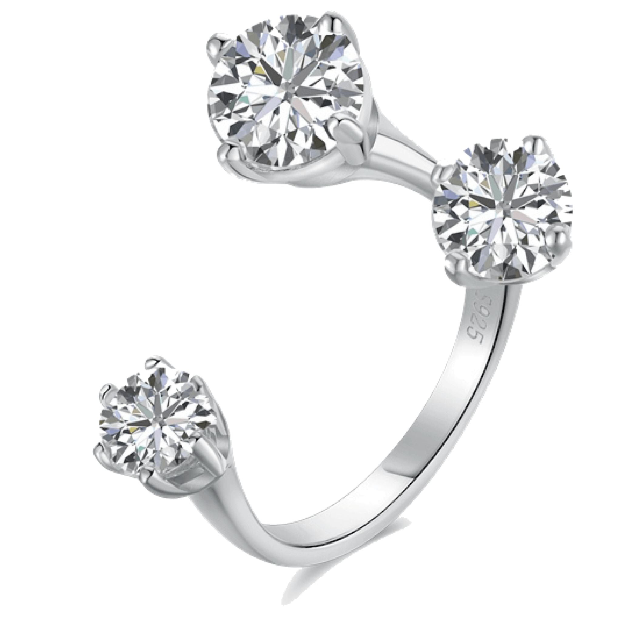 An icon of modern love. The L’Amour Ring transforms a classic three-stone silhouette into a sculptural statement of contemporary elegance. Its innovative open-band design creates the illusion of three premium-cut VH zirconia stones floating weightlessly across your finger—each one precision-set to capture and reflect light with mesmerizing brilliance.