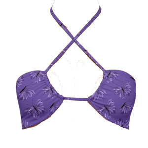 Reversible and versatile bikini top, Optional styling, Adjustable halter ties, Pull on style. Recycled, flat matte, super-soft &rich hand feel.
