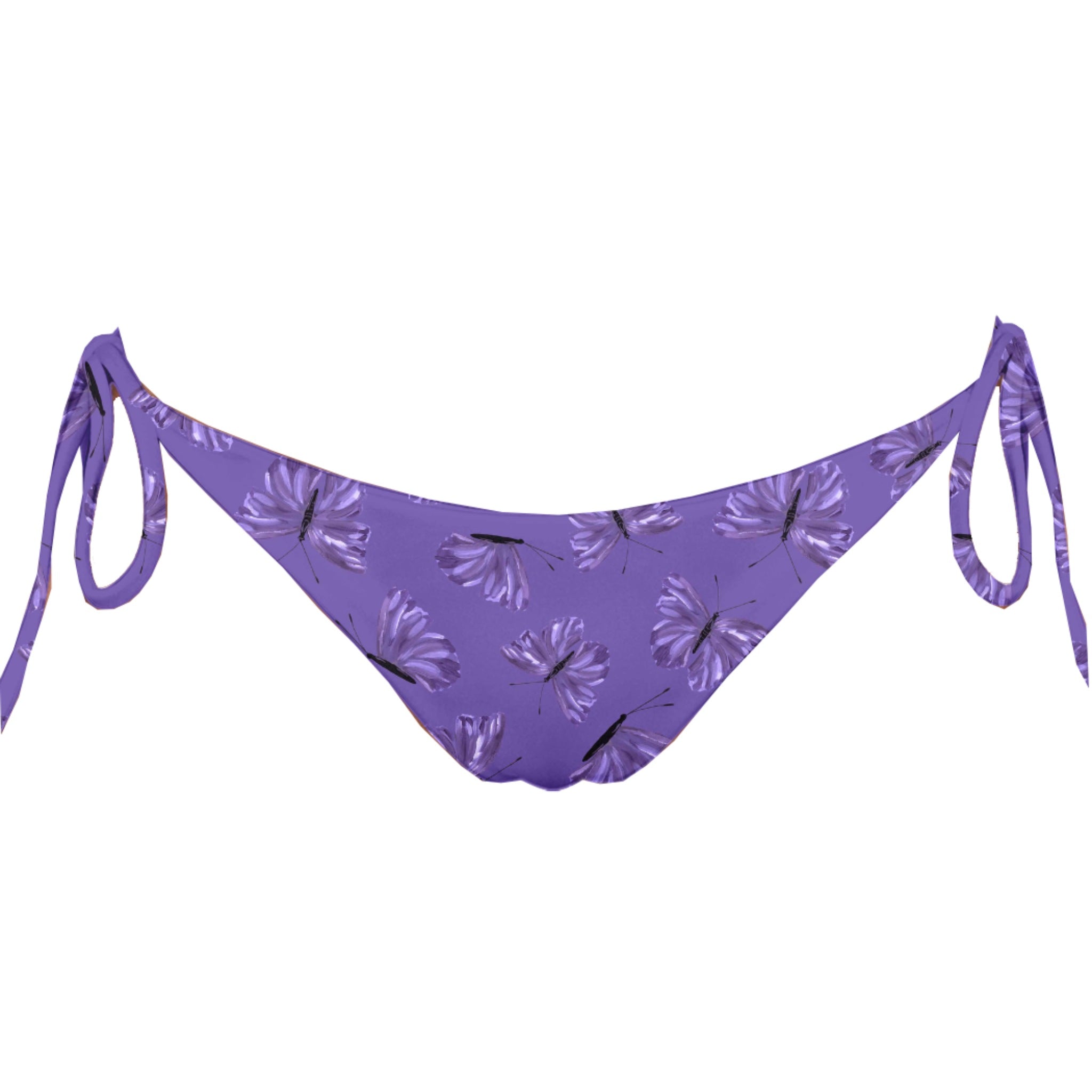 Mid-rise side tie bikini bottom with adjustable thin strap closures. Recycled, flat matte, super-soft & rich hand feel.