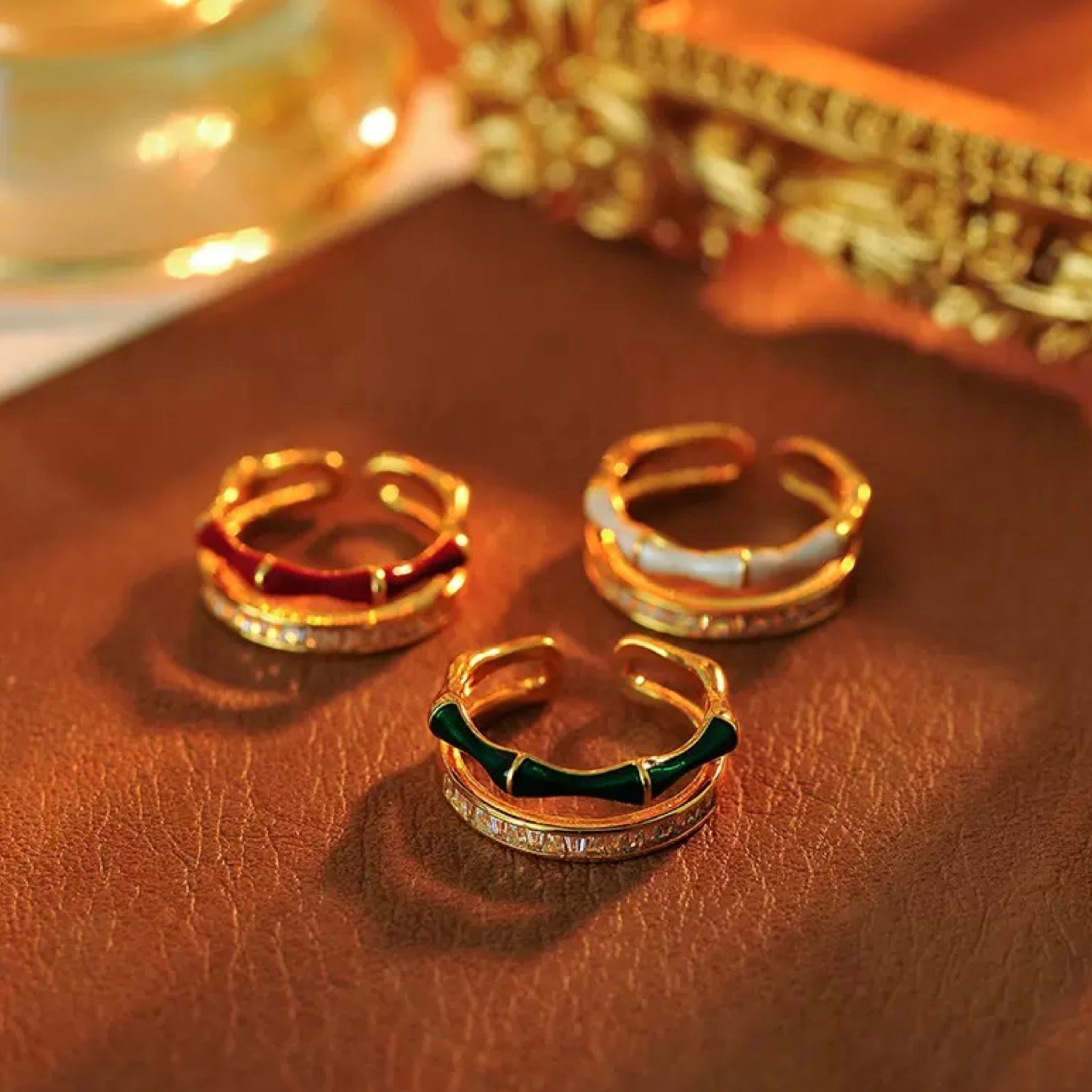 Inspired by the graceful strength of bamboo, this ring embodies harmony, resilience, and timeless beauty. The double enamel bands in a soft cream hue create a sleek yet organic look, echoing the natural rhythm of bamboo segments. Crafted with care, it balances modern minimalism with a touch of nature-inspired elegance—perfect for everyday wear or as a symbolic piece celebrating growth and renewal.