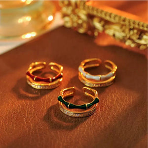 Inspired by the graceful strength of bamboo, this ring embodies harmony, resilience, and timeless beauty. The double enamel bands in a soft cream hue create a sleek yet organic look, echoing the natural rhythm of bamboo segments. Crafted with care, it balances modern minimalism with a touch of nature-inspired elegance—perfect for everyday wear or as a symbolic piece celebrating growth and renewal.