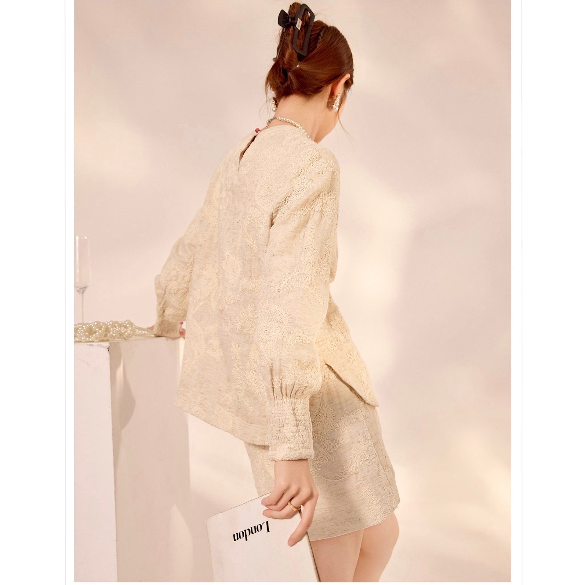 Model B 5'4" / 55 kg / 35" / 29" / 38" wears M.