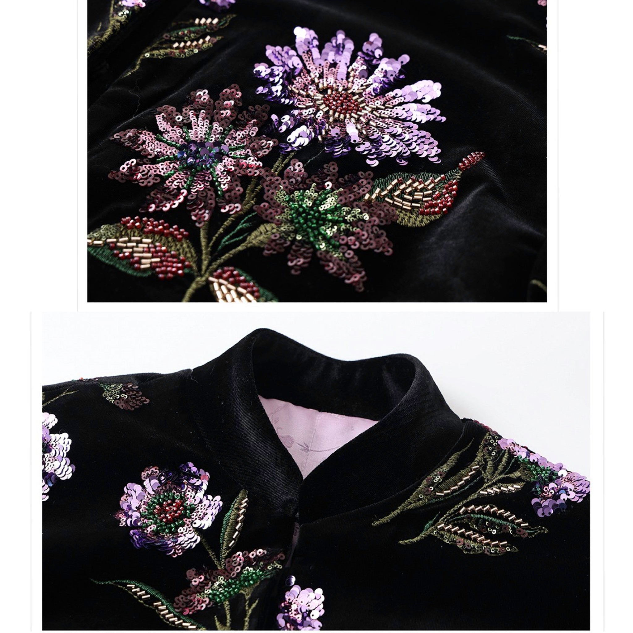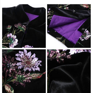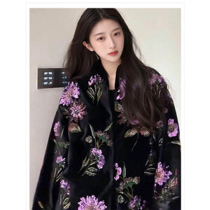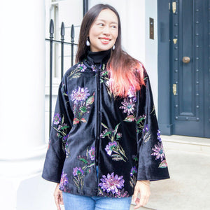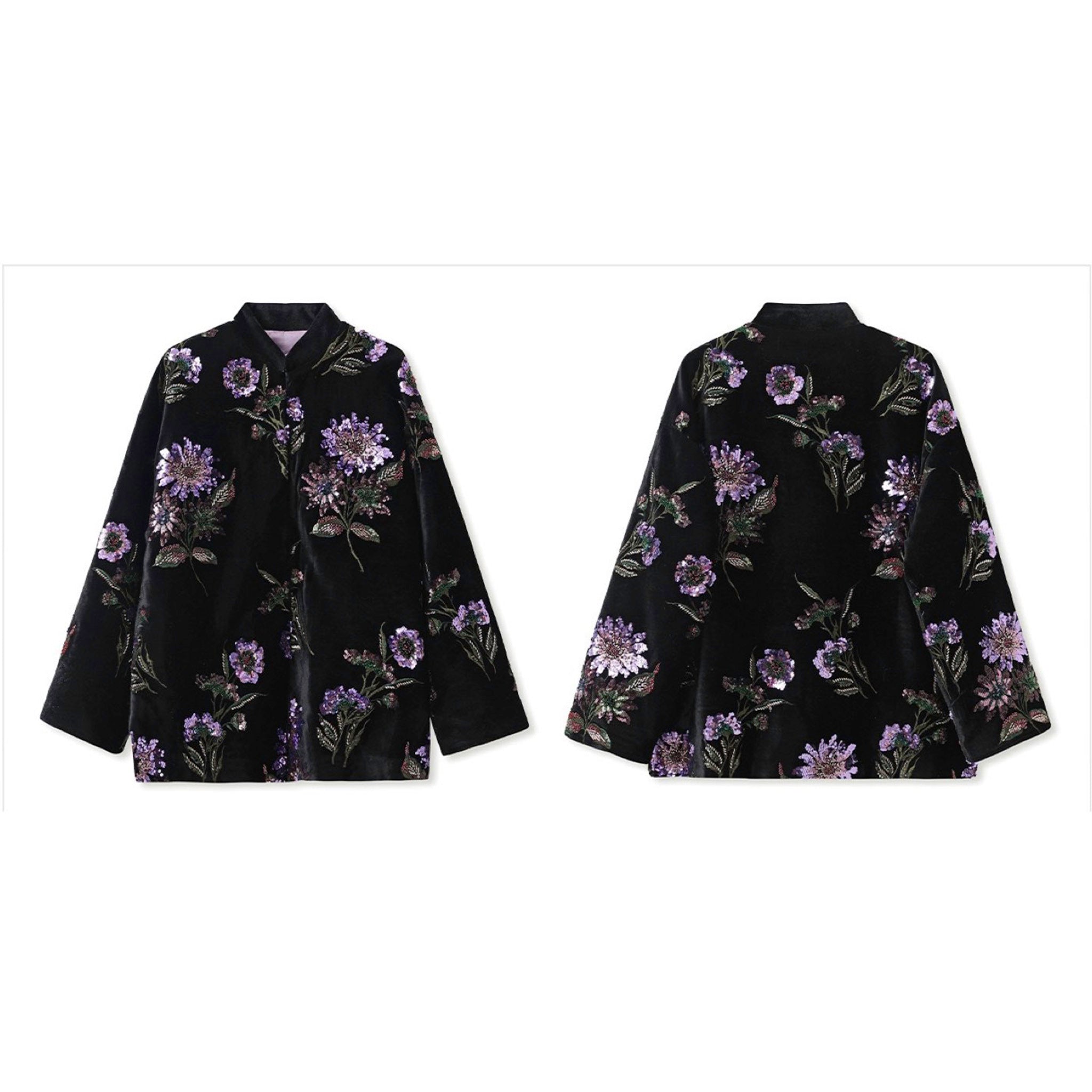 With its straight-cut shape, the jacket balances refined craftsmanship with contemporary wearability. Perfect for special occasions or as an elevated everyday piece, it captures the mystery of night blooms and the timeless allure of embroidery in one poetic design.