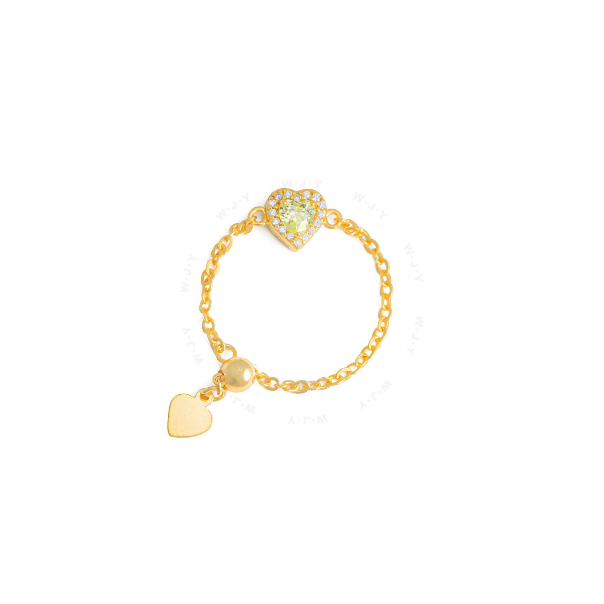 Peridot Heart Birthstone Gold Zipper Ring