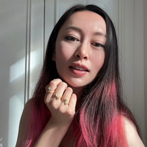 Inspired by nature, this green ring symbolizes growth, vitality, and well-being. Crafted from 18-carat gold-plated silver, the adjustable zipper design fits all finger sizes. It reflects the quiet shift within—the opening of hidden moods. Let the color speak to your heart, worn proudly on your fingers.
