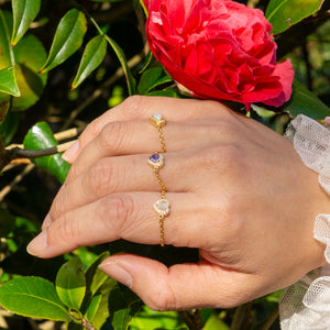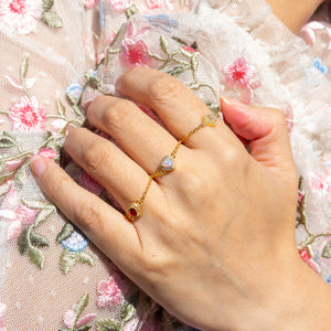 Soft yet powerful, the pink ring expresses warmth, success, and loving care. Crafted from 18-carat gold-plated silver, the adjustable zipper design fits all finger sizes. It reflects the opening of hidden moods and quiet inner shifts. Let the color speak to your heart—worn gracefully on your fingers.