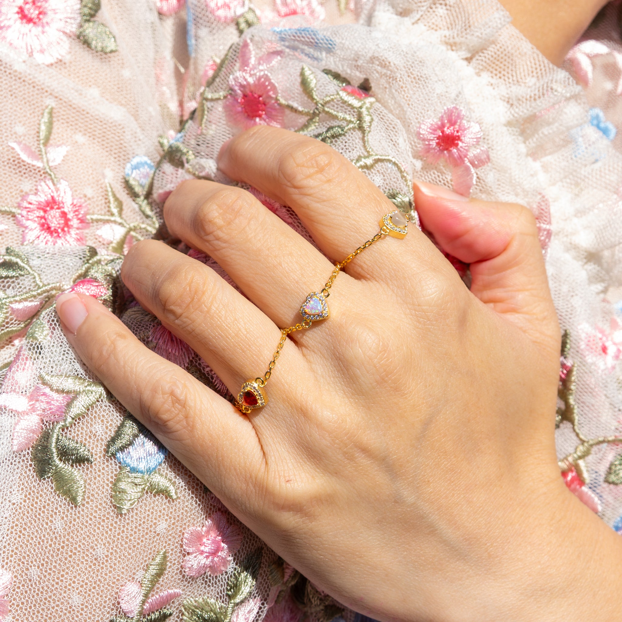 WJY STUDIO - Ruby Heart Birthstone Gold Zipper Ring | at DOORS NYC