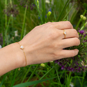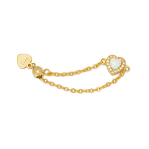 WJY STUDIO - White Opal Heart Birthstone Gold Zipper Ring | at DOORS NYC