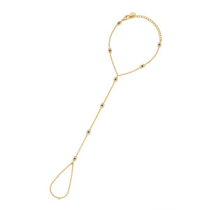 Add a touch of meaning to your jewelry stack with the Nikki Handchain, crafted in luxe gold vermeil and adorned with eight double-sided evil eyes for protection, abundance, and sparkle. Feminine and eye-catching, this unique hand chain bracelet brings fluid movement and good energy to your look—perfect for layering with rings or worn solo for a statement moment.